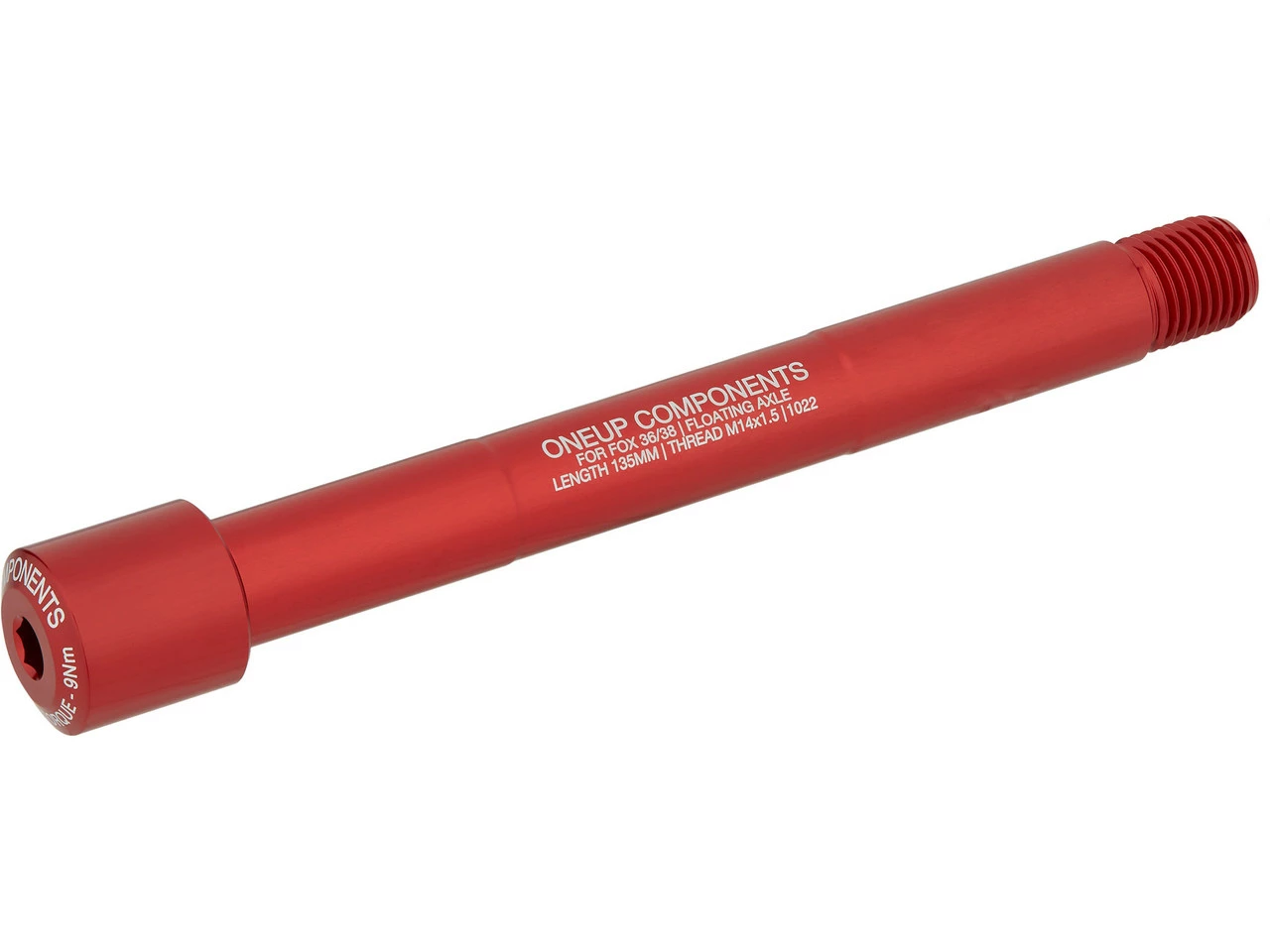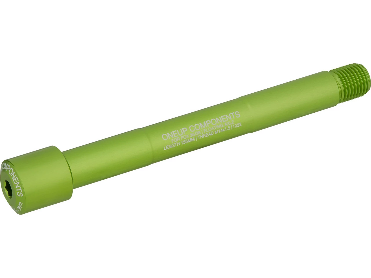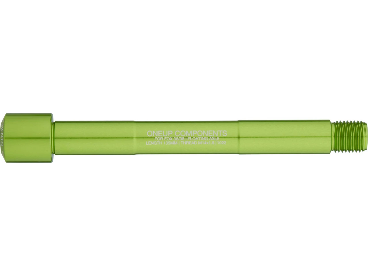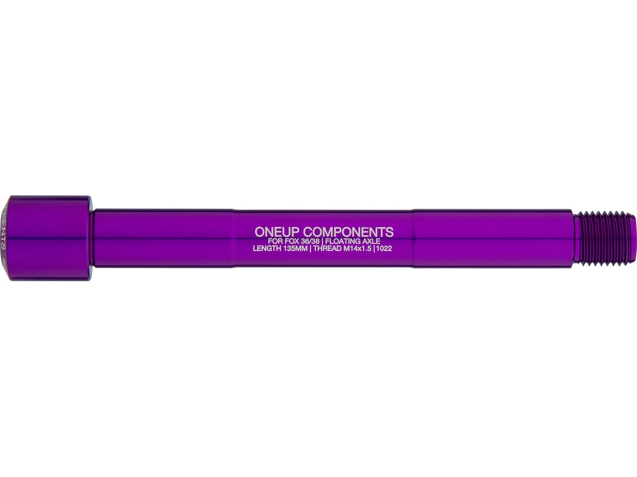 Utilisation :roue avant : 15 x 110 mmMatériau de l’axe :aluminium (6061-T6)Longueur de l’axe :135 mmDiamètre nominal :M14Pas de filetage :1,5 mmCompatibilité :fourches à suspension Fox Racing Shox 15 mm Boost avec axe flottant (Floating Axle)Numéros du fabricant:1C0757BLK (black), 1C0757RED (red), 1C0757BLU (blue), 1C0757GRN (green), 1C0757ORA (orange), 1C0757PUR (purple)Contenu :1 x axe traversant pour roue avant OneUp Components Fox Floating Boost