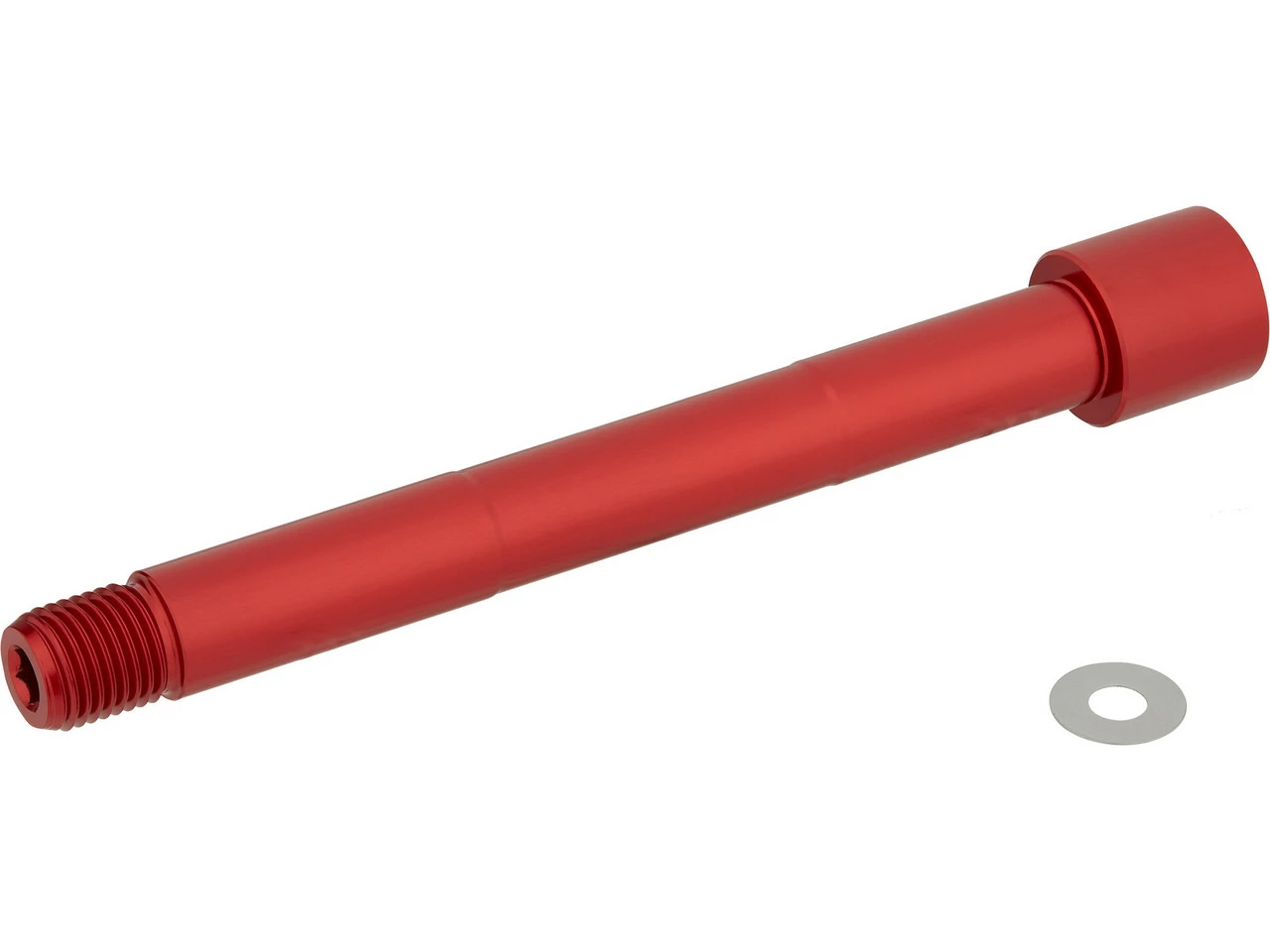 L’axe traversant pour la roue avant OneUp Components Fox Floating est compatible avec les fourches à suspension 15 mm Boost de Fox Racing Shox qui ont un axe flottant. Il se distingue par sa grande rigidité, sa capacité de charge et son poids relativement faible. Le design plaît par son look épuré. Une simple vis hexagonale de 6 mm est utilisée à la place d’un levier de serrage rapide. Le risque de rester accroché à des obstacles sur le trail est ainsi minimisé. Pour desserrer la vis, tu peux utiliser un outil multifonctions, par exemple l’outil EDC de OneUp, également lors de tes déplacements.