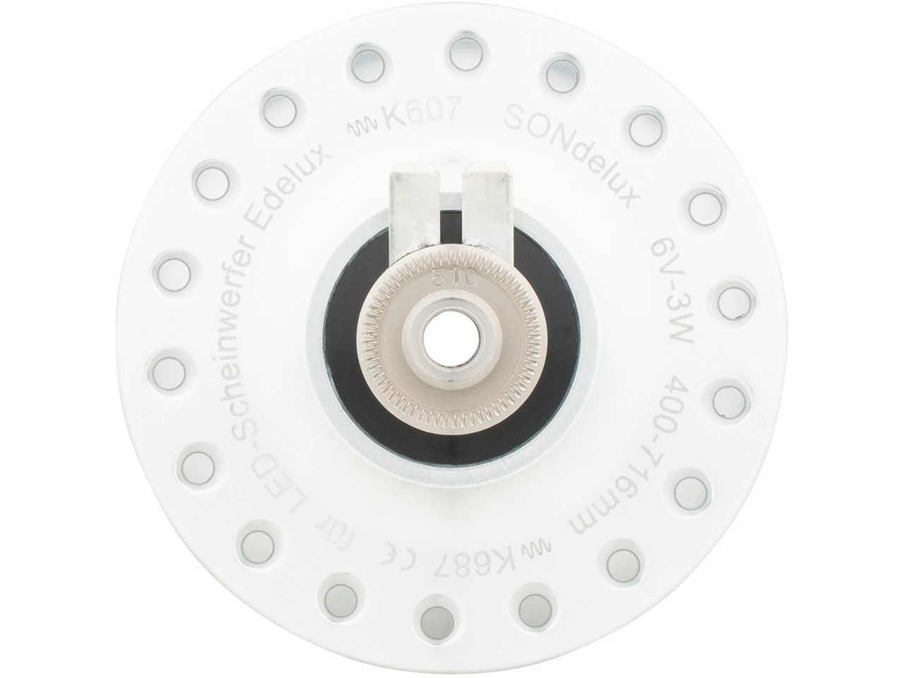 Contrairement à une ampoule halogène, une LED est très efficace même à charge partielle, c’est-à-dire lorsqu’elle fonctionne en dessous de sa puissance nominale. Il n’est donc plus nécessaire de construire la dynamo de manière à ce qu’elle atteigne sa pleine puissance déjà à la vitesse la plus basse possible. Le Son Delux est donc plus petit et plus léger qu’un moyeu à dynamo pour un éclairage halogène (SON 28).