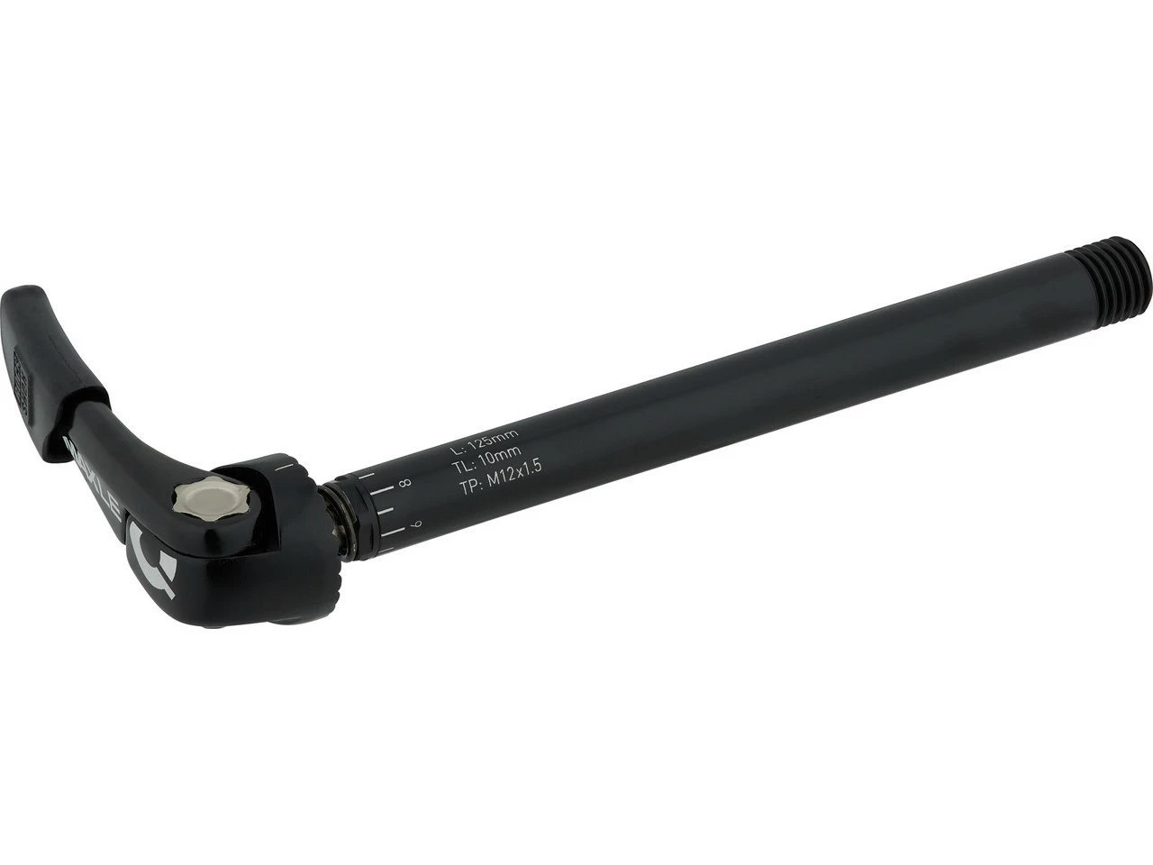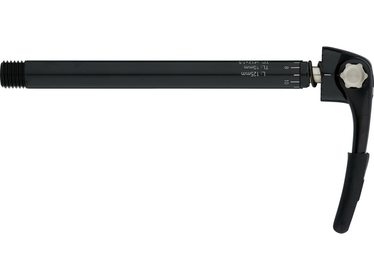 Spécifications :Largeur :roue avant : 100 mmDiamètre de l’axe :12 mmType :axe traversant avec levier de serrage rapideCaractéristiques :force de serrage élevéemontage sans outilsVersions :12 x 100 mm, 1,5 mm, 137 mm :