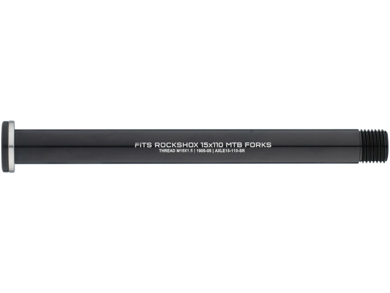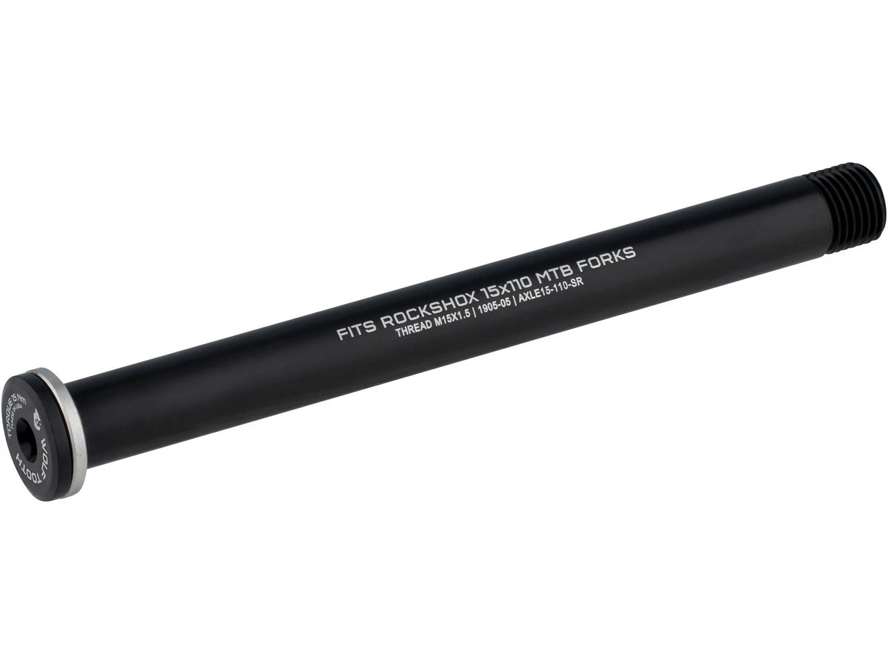 Spécifications :Largeur :roue avant : 110 mmDiamètre de l’axe :15 mmInformations techniques :Utilisation :roue avant : 15 x 110 mmType :axe traversantMatériau de l’axe :aluminium (7075-T6)Longueur de l’axe :158 mmDiamètre nominal :M15Pas de filetage :1.5Longueur du filetage:12 mmCompatibilité :fourches à suspension RockShox 15 mm (Boost)pas compatible avec RS-1 (en raison de la construction particulière de l’axe du moyeu)Caractéristiques :avec rondelle en acier plaquépour clef hexagonale de 6 mmfabriqué aux USA